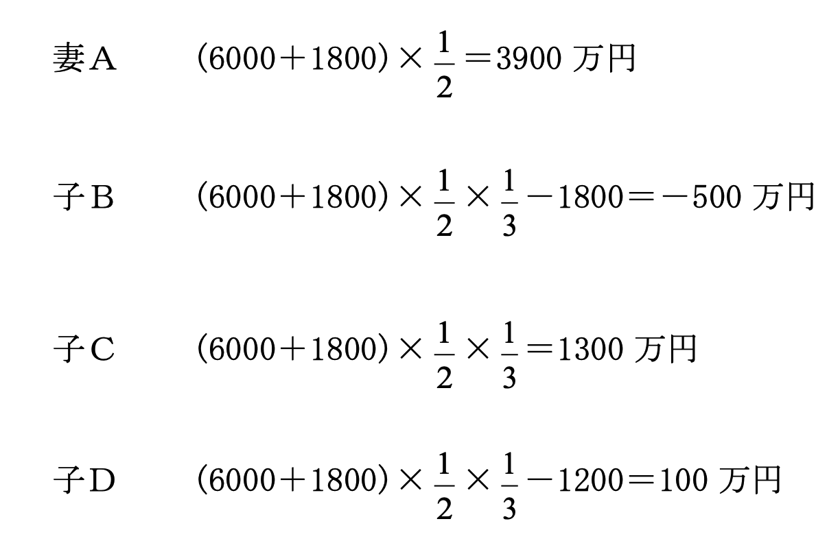 超過特別受益者がいる場合でも、 算定方法は、 超過特別受益者がいない場 合と同様です。
