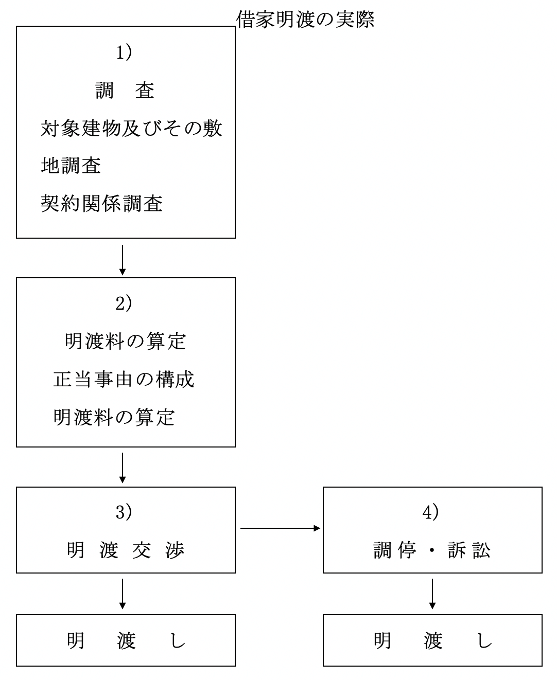以上の手続を経て法律的な根拠方針を明確にして借家人と明渡しの交渉を行います。