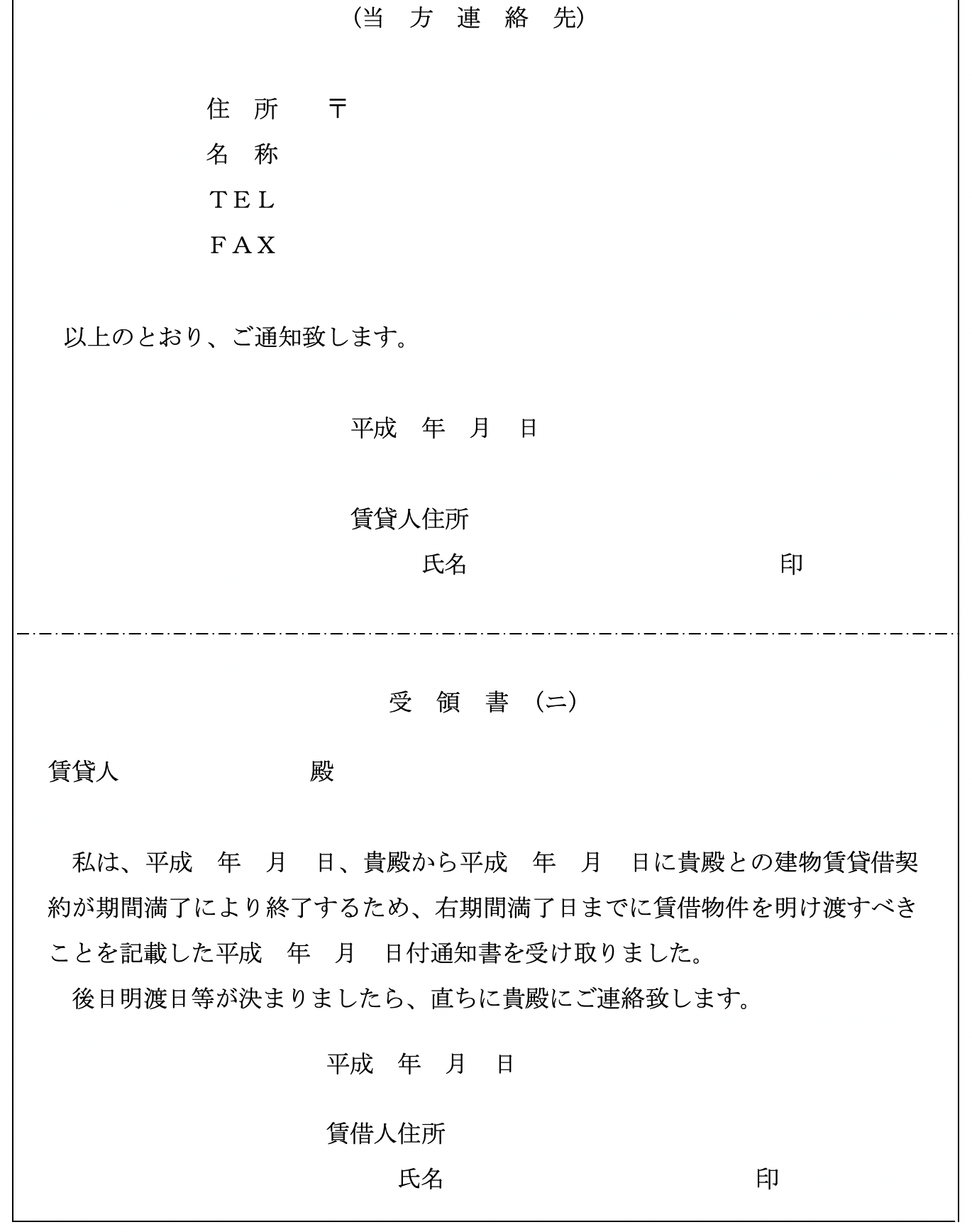 なお、 住宅標準契約書の終了通知には、 受領書が添付されていませんので、 後日通知の有無について紛争が起こらないように配慮する必要があります。