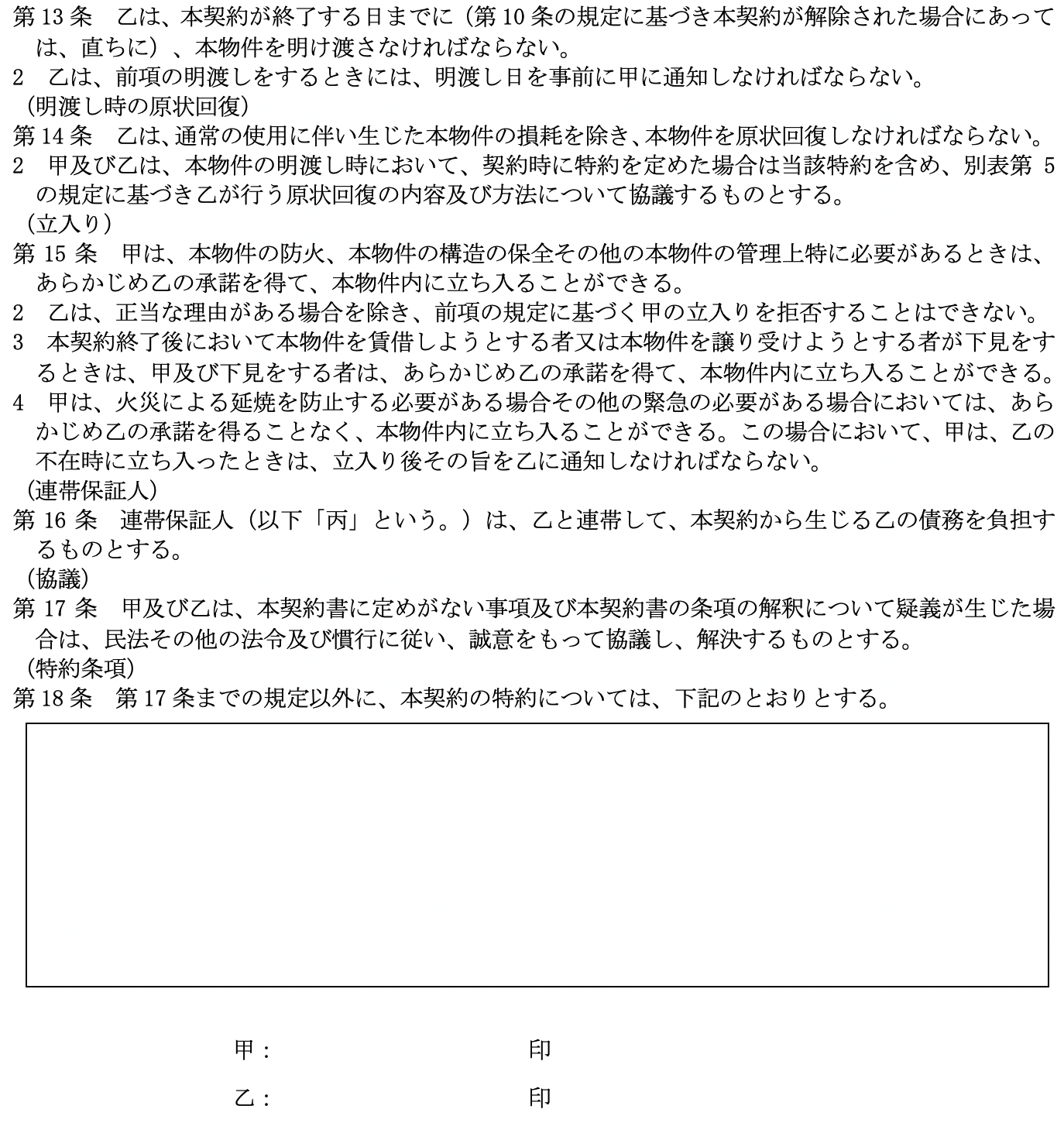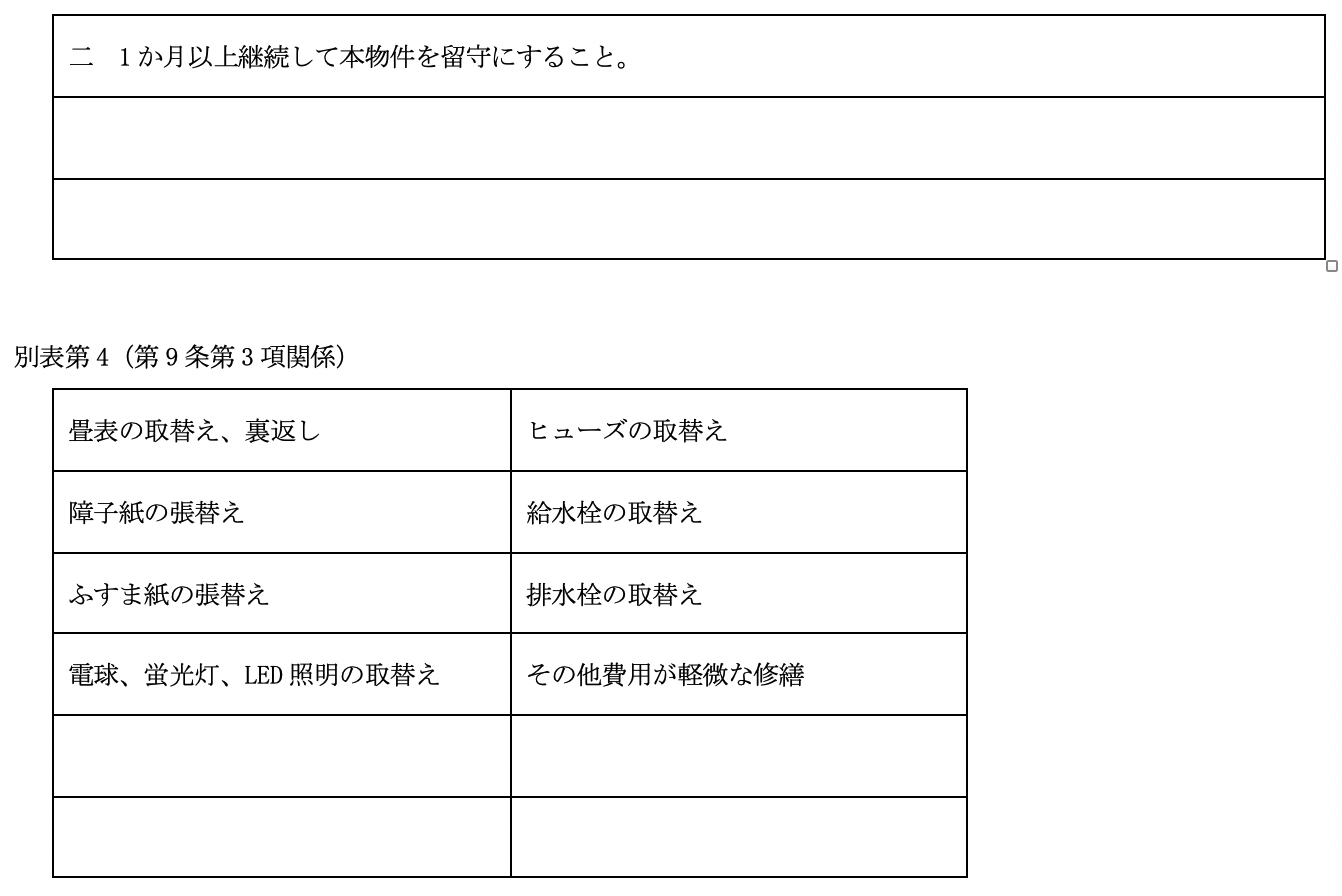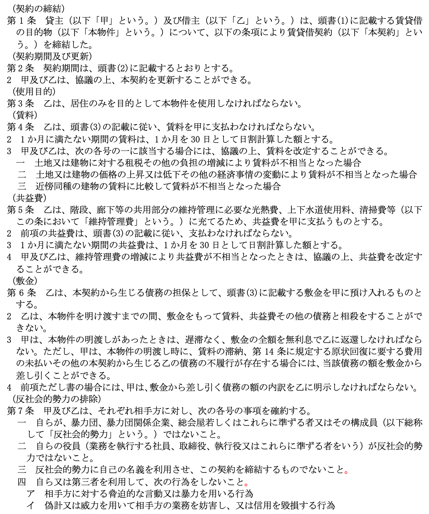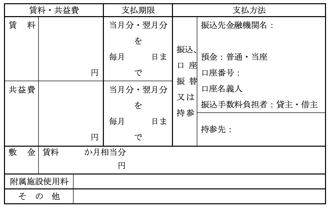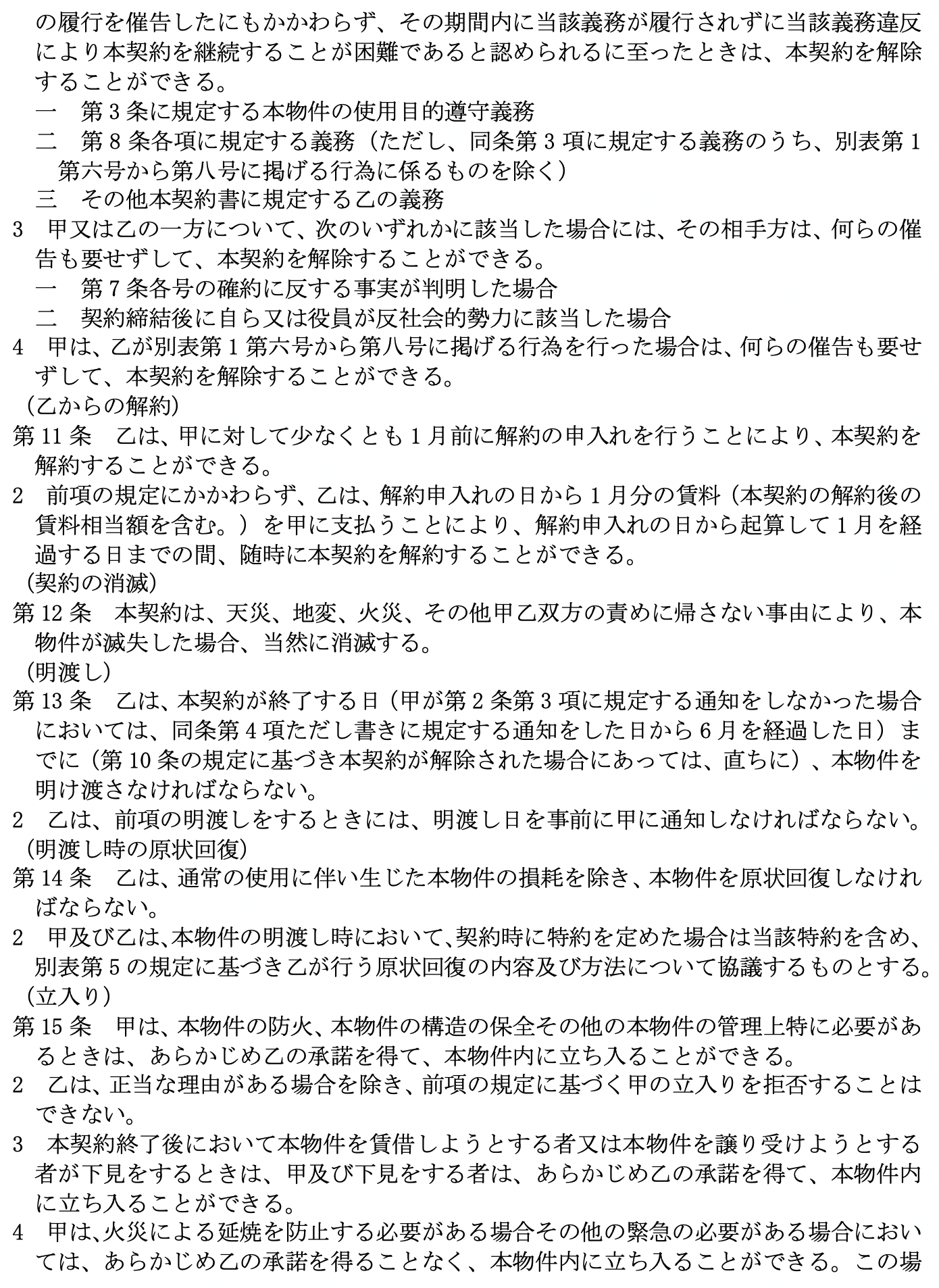 となっています。 尚、 比較の便のため、 第5として国土交通省作成にかかる普通賃貸借契約標準契約書式並びに関連書式を添付しました。