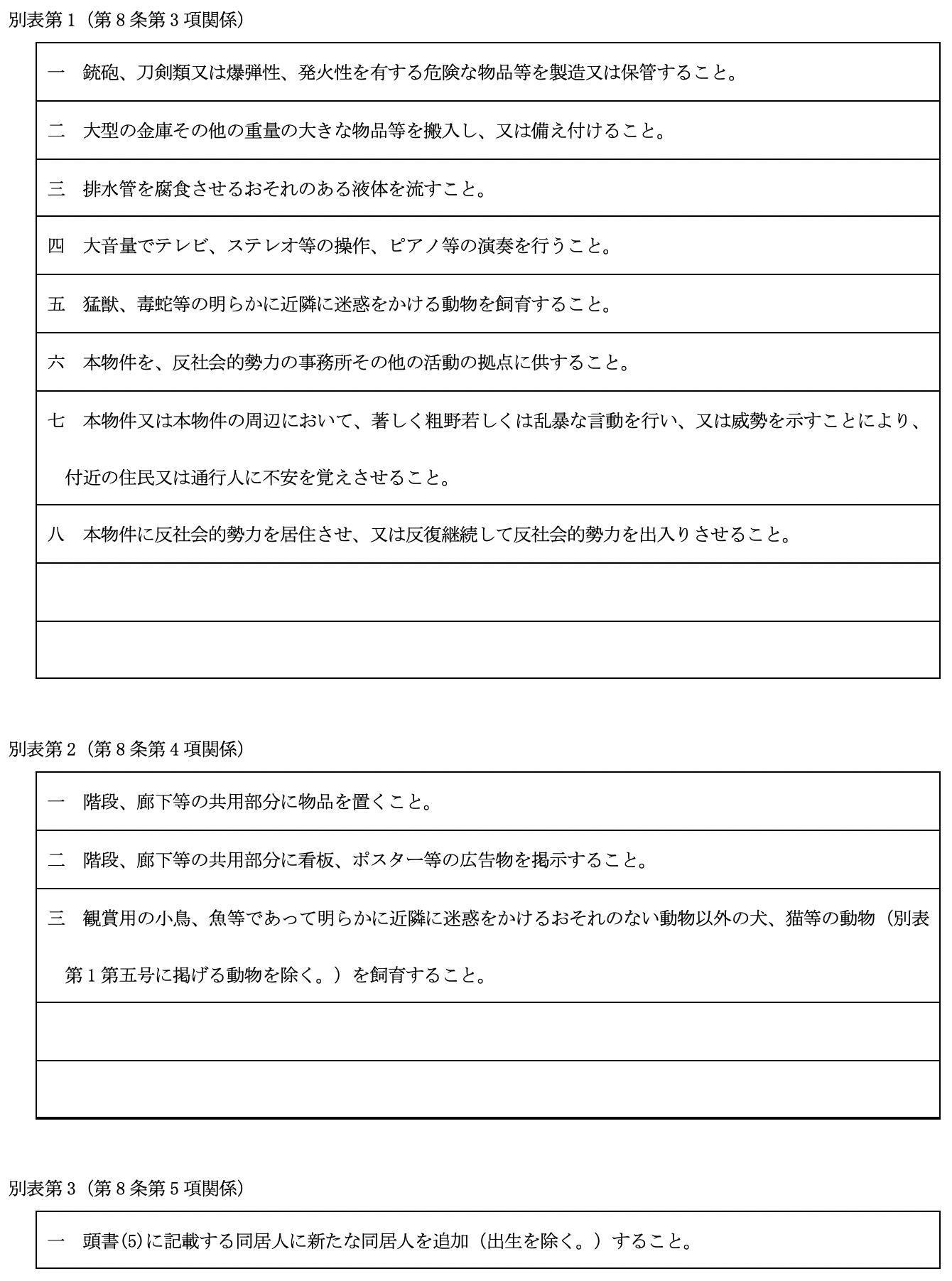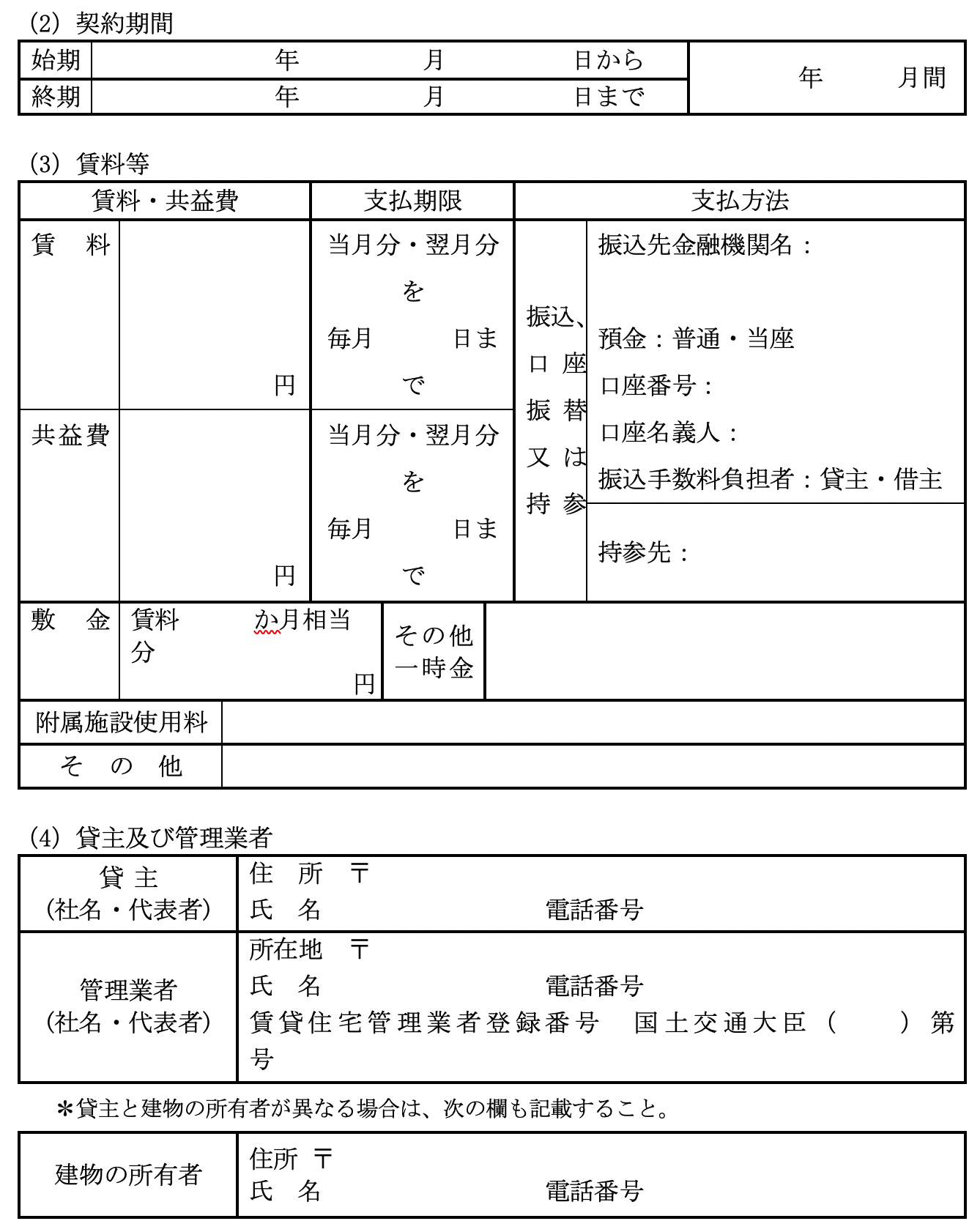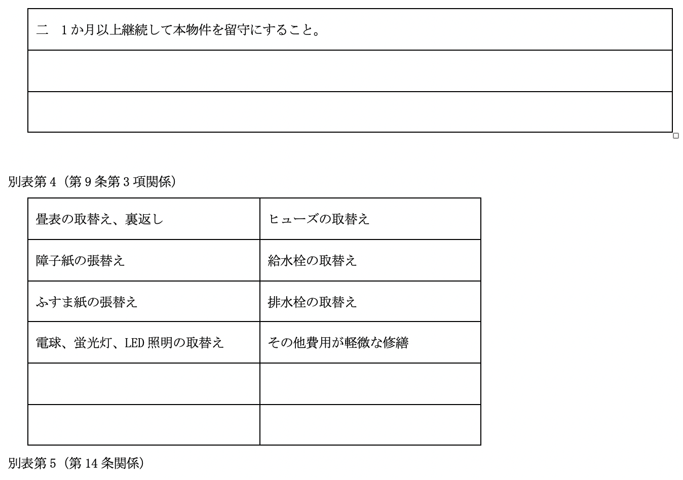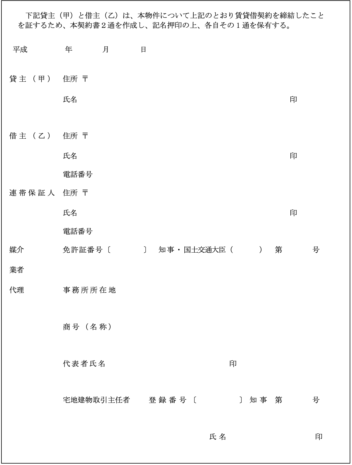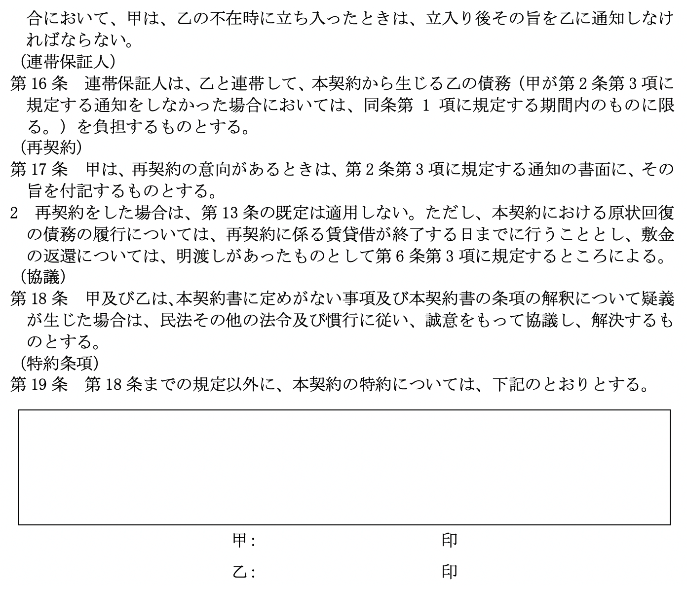 となっています。 尚、 比較の便のため、 第5として国土交通省作成にかかる普通賃貸借契約標準契約書式並びに関連書式を添付しました。