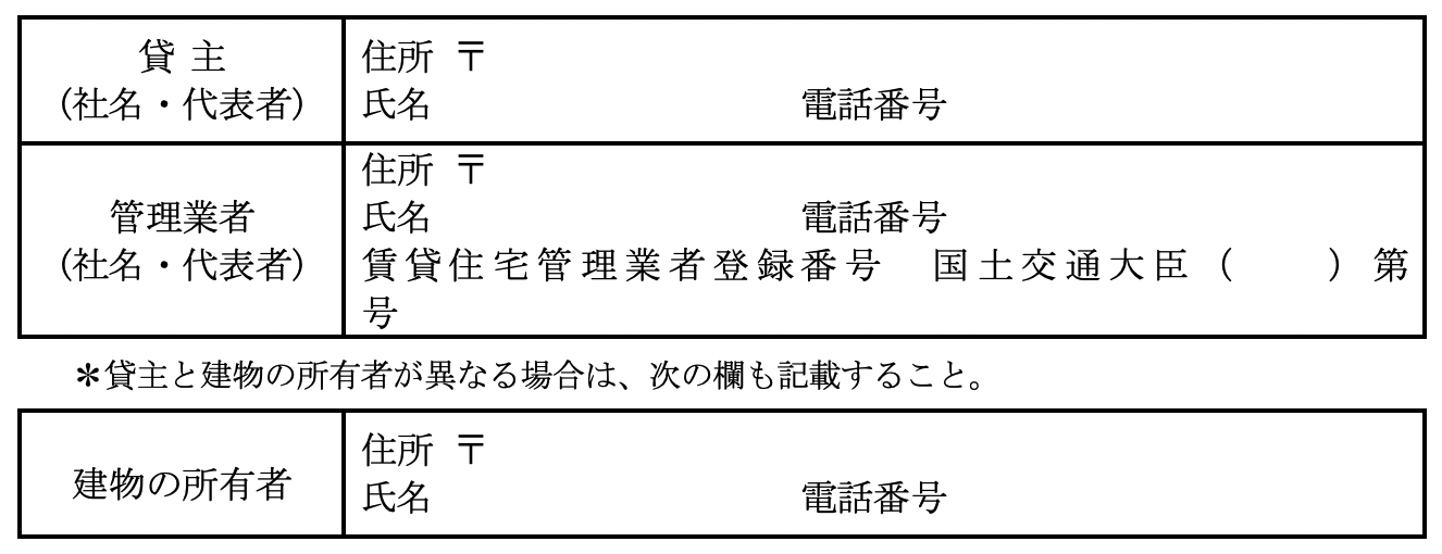 貸主及び管理業者