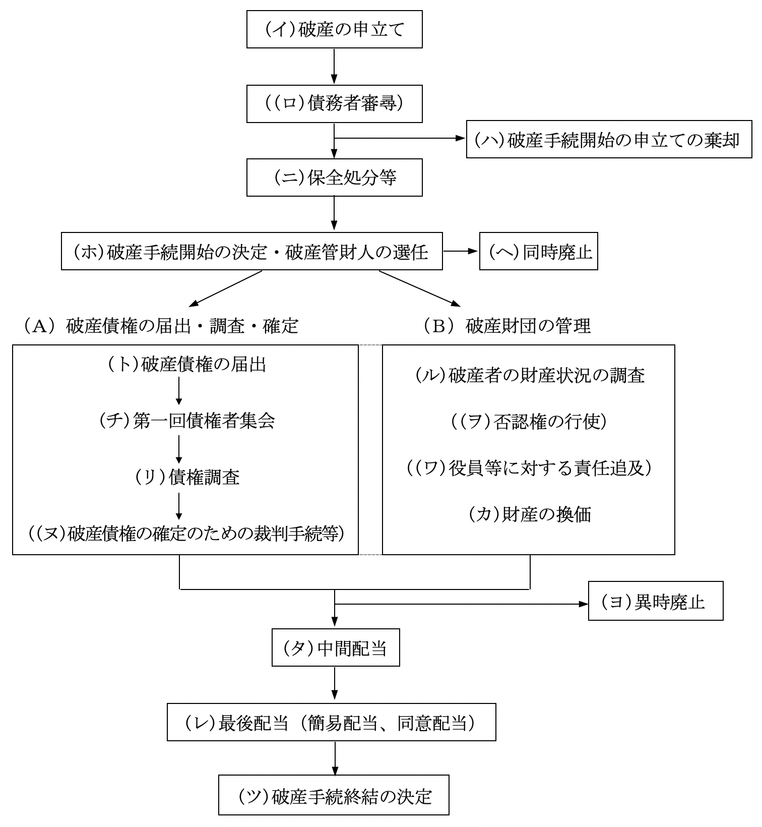 破産とは,会社が債務超過や支払不能に陥った場合に,裁判所が破産手続を開始して破産管財人を選任した上で、破産管財人が債権の回収、不当に流出した財産の取り戻し、会社財産の換価・処分などをなし,破産手続と無関係に請求される債務を弁済した後、残った財産を債権者に公平に配当する手続です。