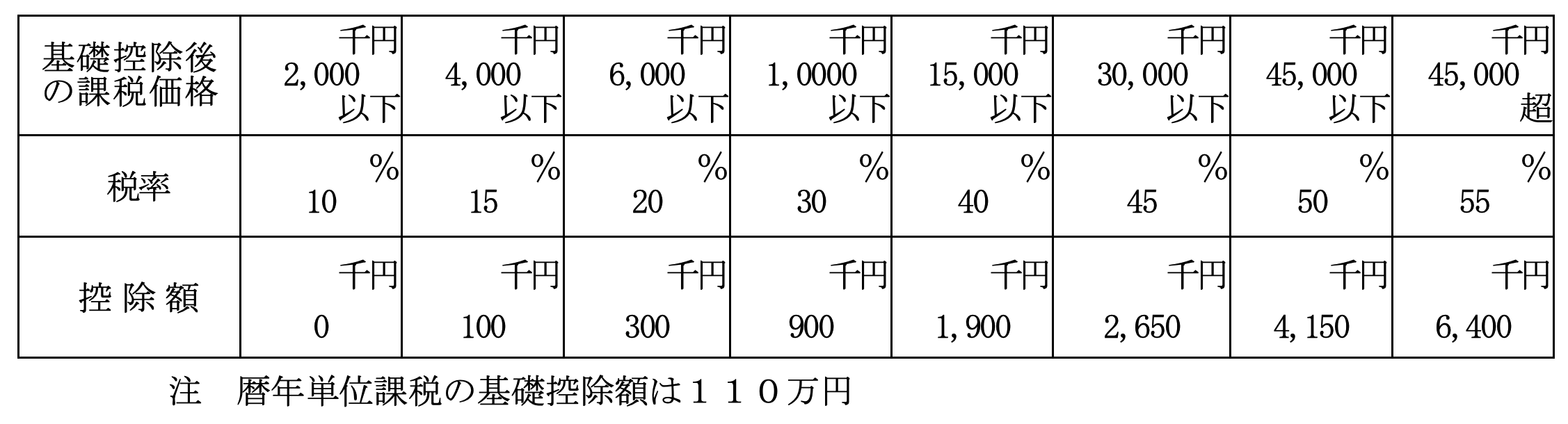 贈与税額は下記の「贈与税の速算表」により計算します。