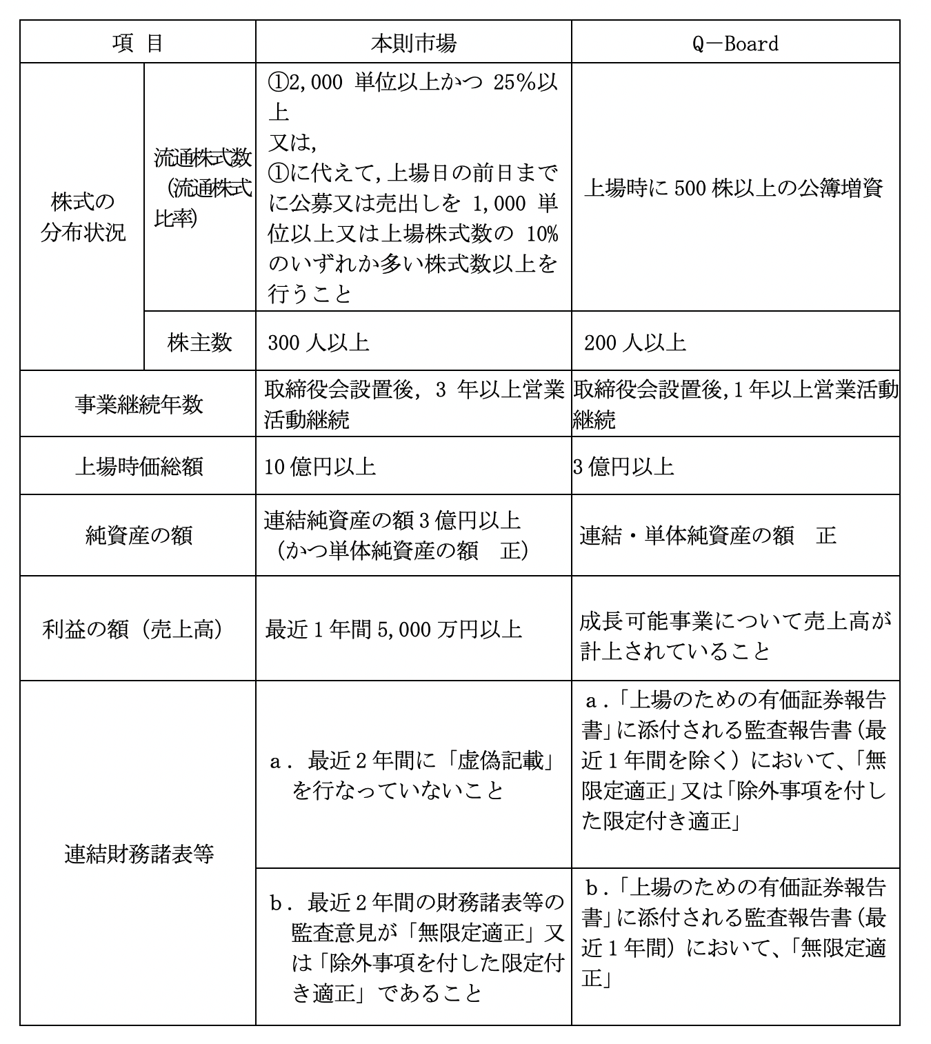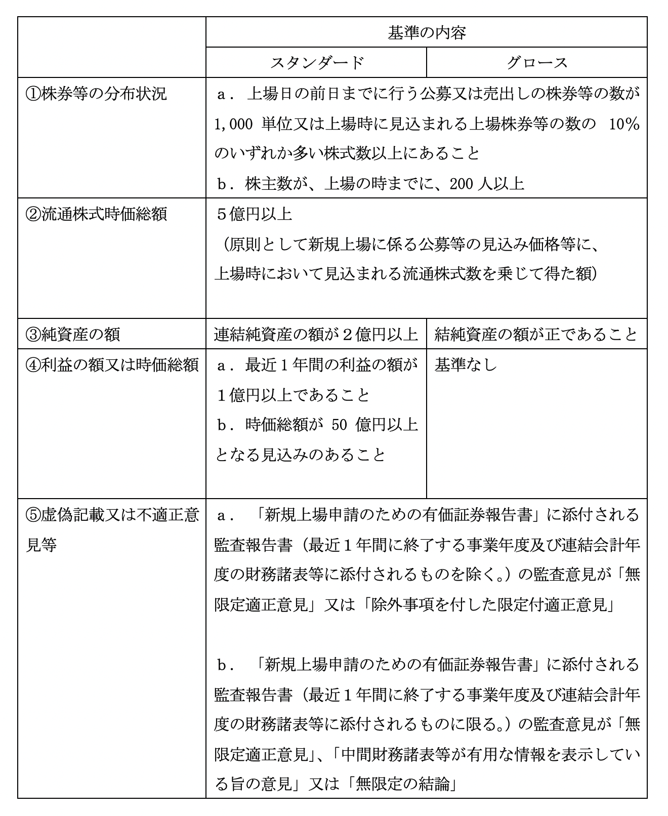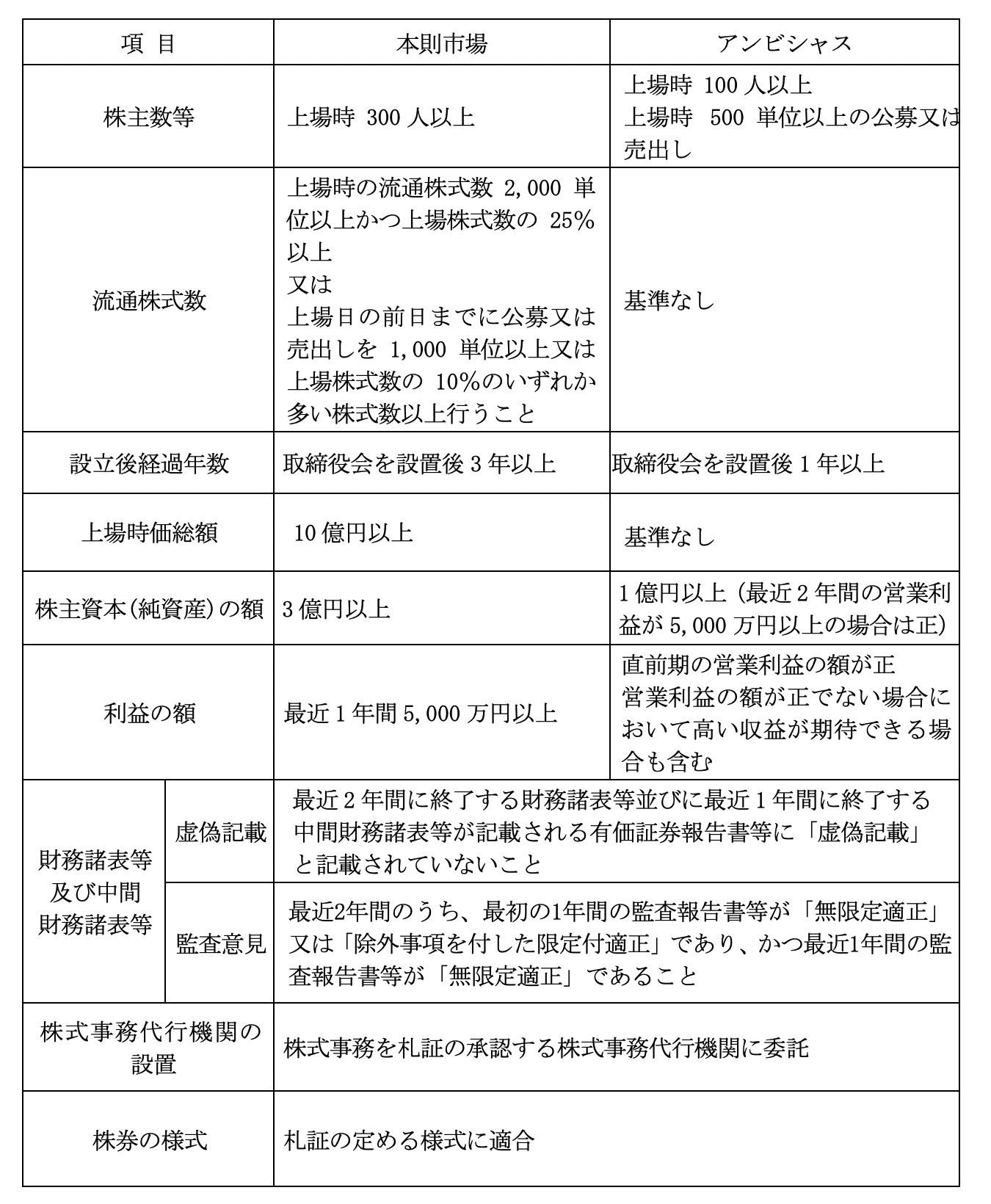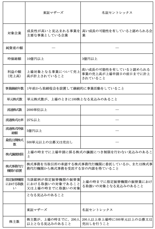 新興市場の上場基準