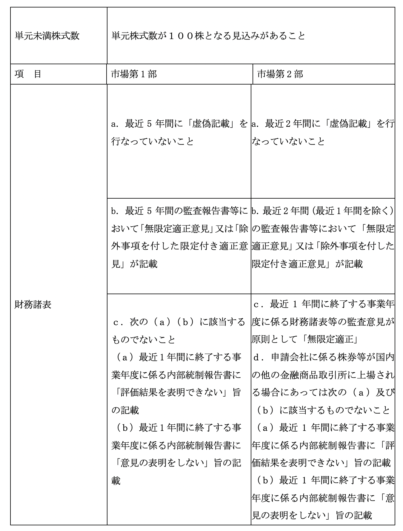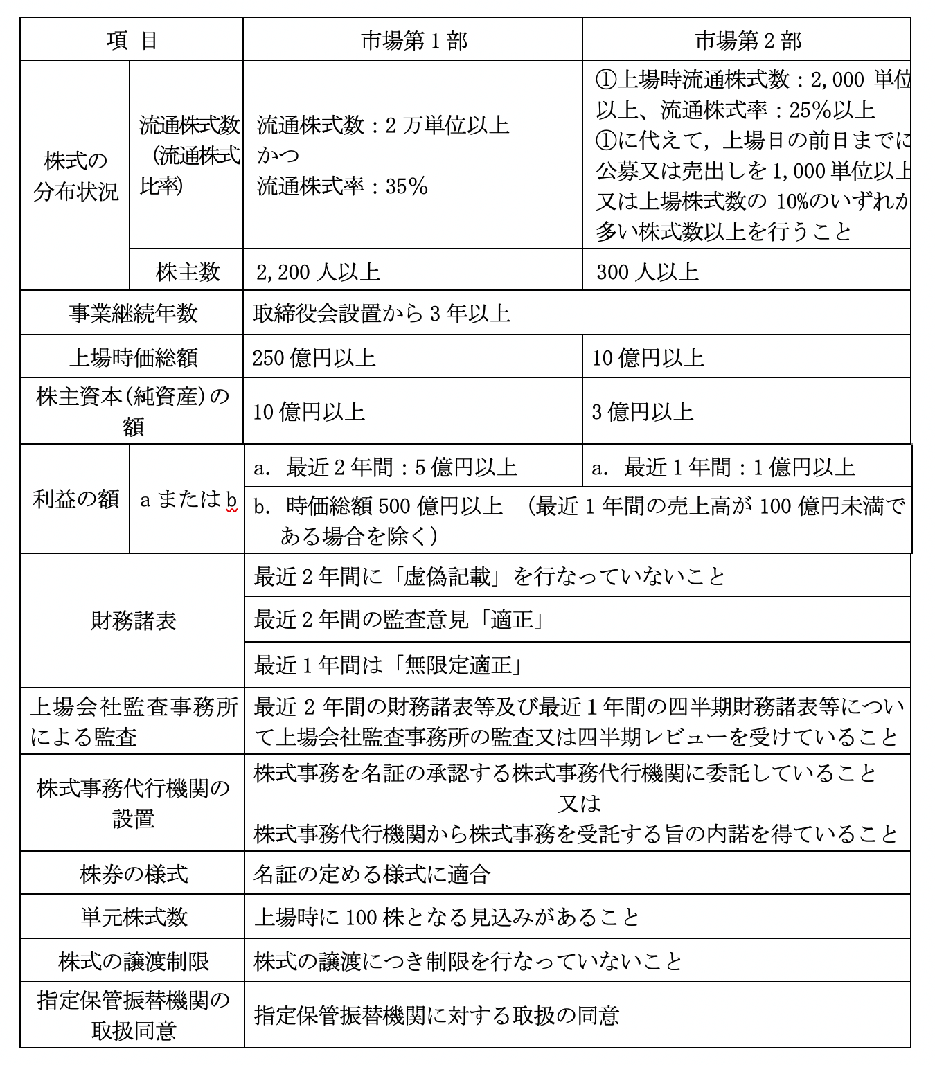 東京証券取引所 上場基準