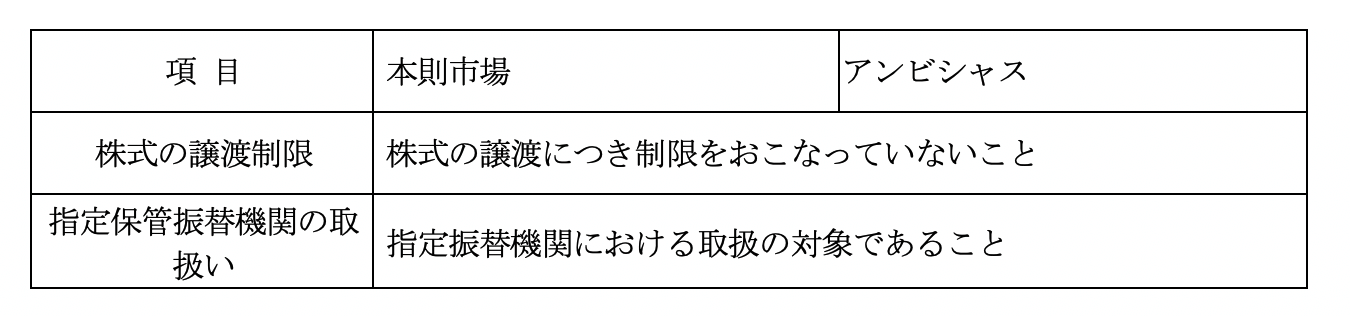 新興市場の上場基準