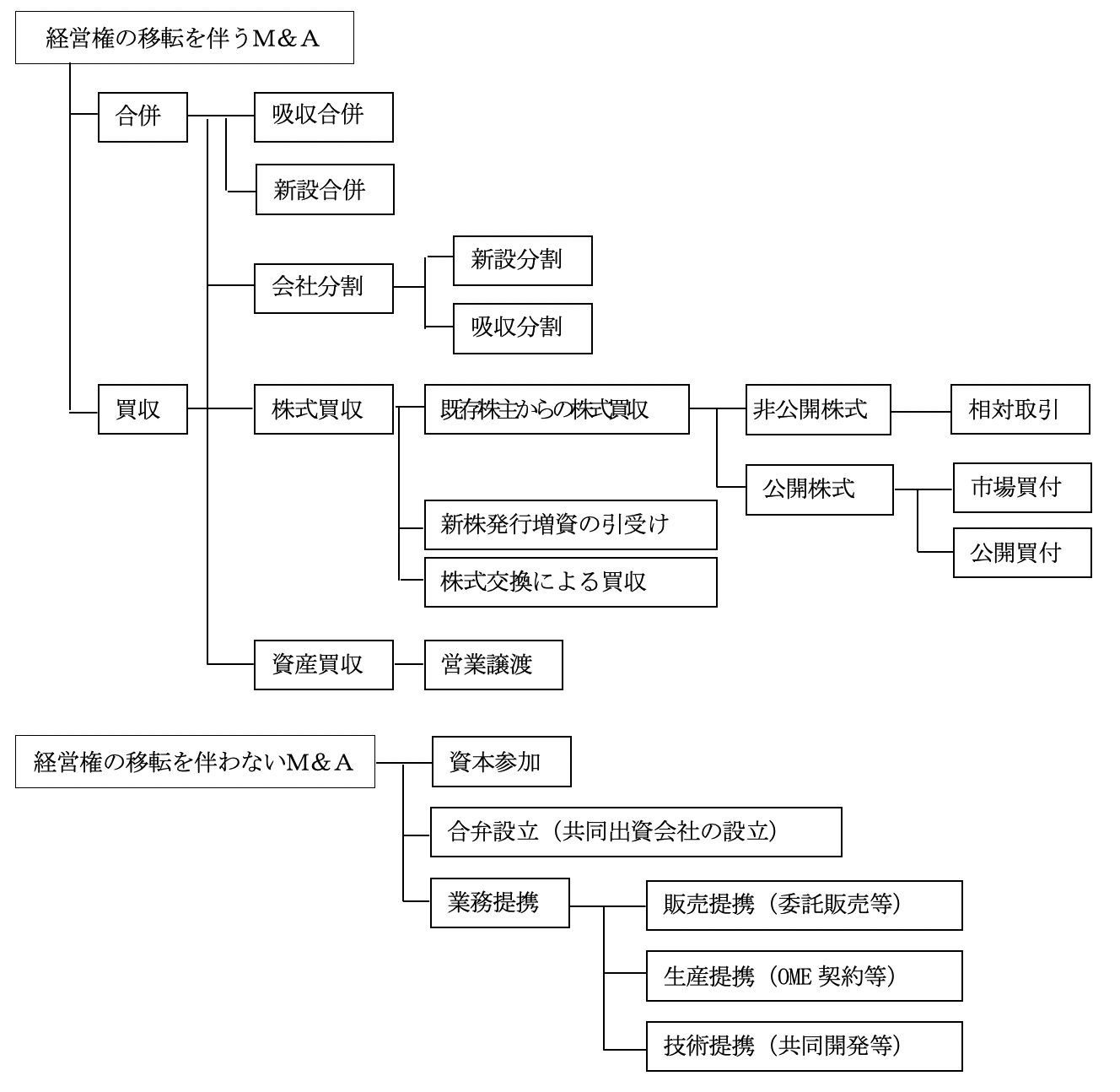 M&Aとは、Merger & Acquisitionの略で、一般に「企業の合併・買収」と呼ばれています。しかし、実際にはM&Aといっても、合併や買収だけに限られるものではなく、様々な形態が存在し、それらを総称して「M&A」と呼ばれています。