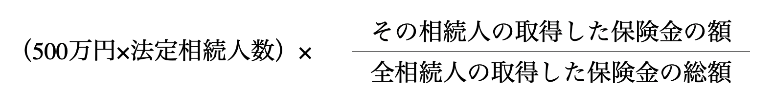 法定相続人1人当たり500万円が非課税金額となります。 したがって、各相続人ごとの非課税限度額は、次の計算式により算出します。