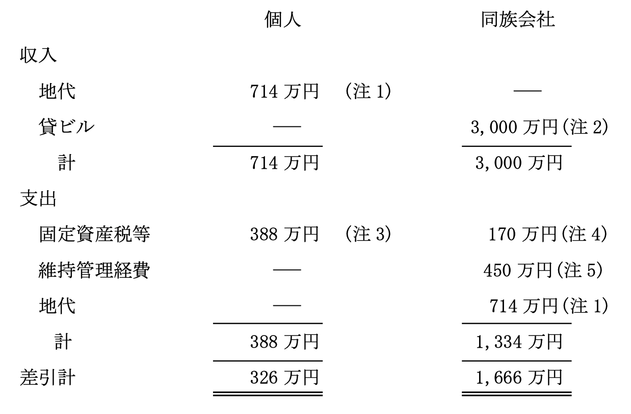 同族会社は、固定資産税等の額の2 倍相当額の地代を個人に支払っています。