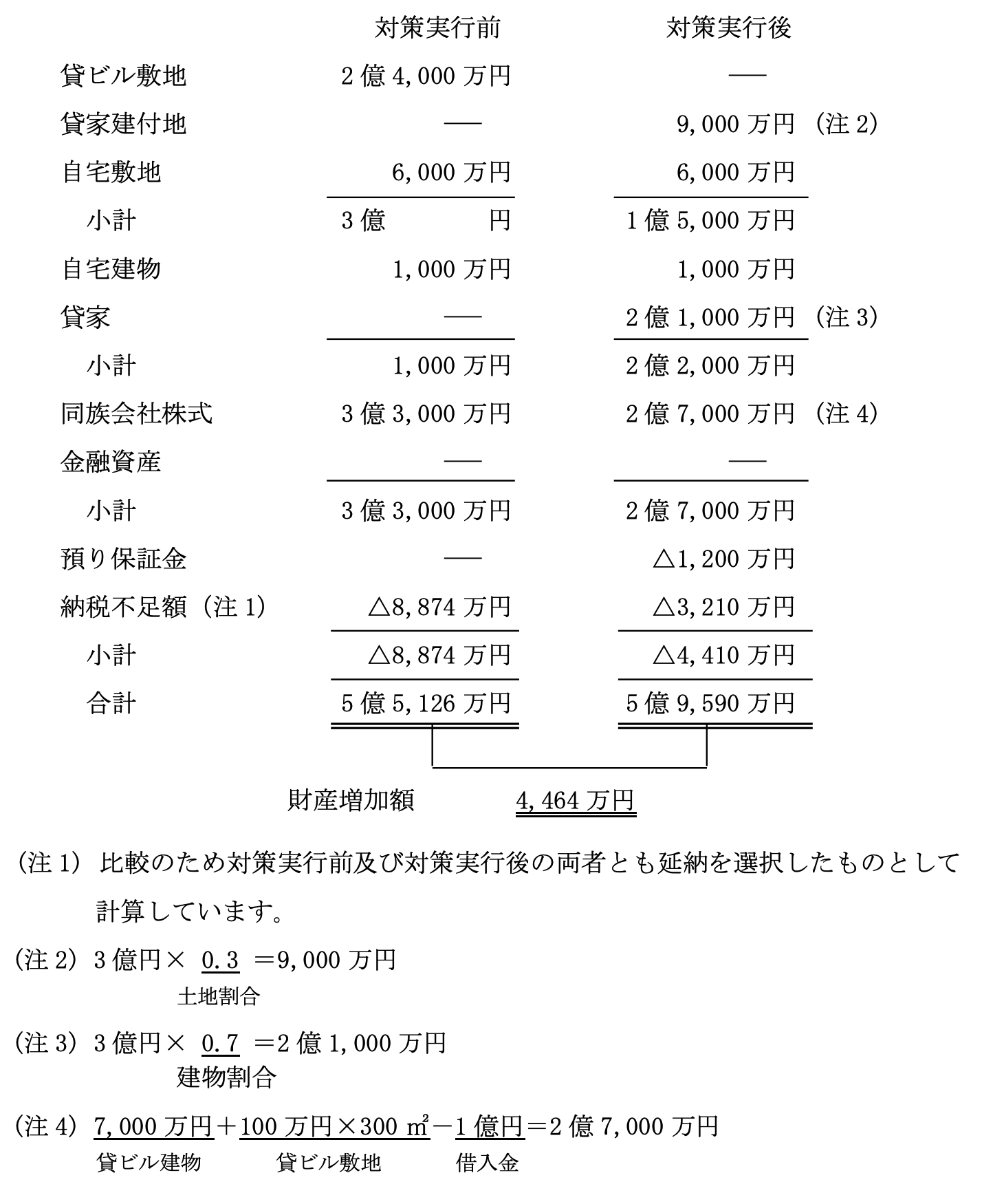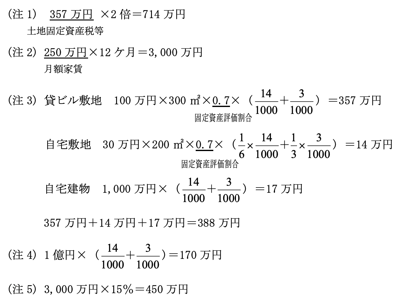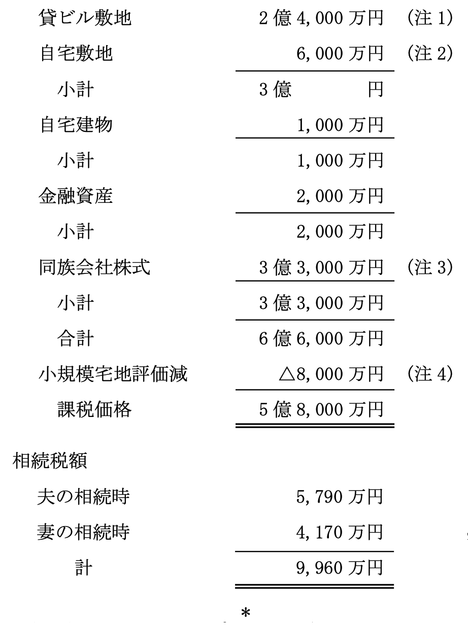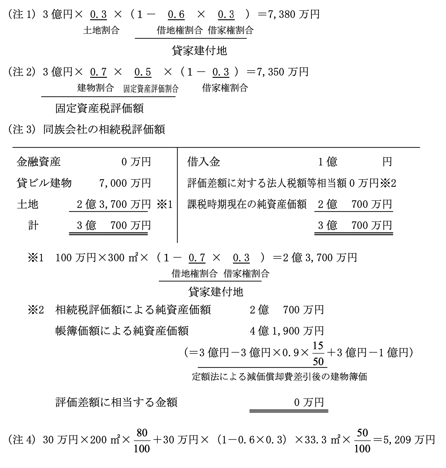 土 地…貸ビル敷地土地300m²、土地の時価は路線価ベースで更地価額m²当たり 100 万円、自宅 200 m²、土地の時価は路線価ベースで更地価額m²当たり30万円