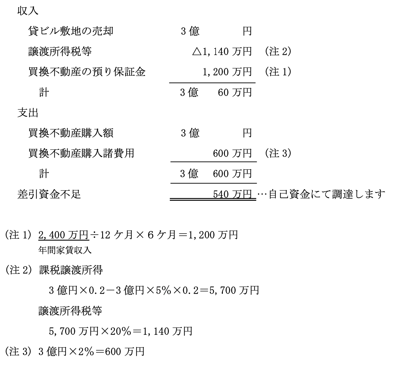 買換購入不動産の年間家賃収入は購入価額の8%、預り保証金は月額家賃の 6ケ月分、維持管理費は年間家賃の収入の 15%とします。
