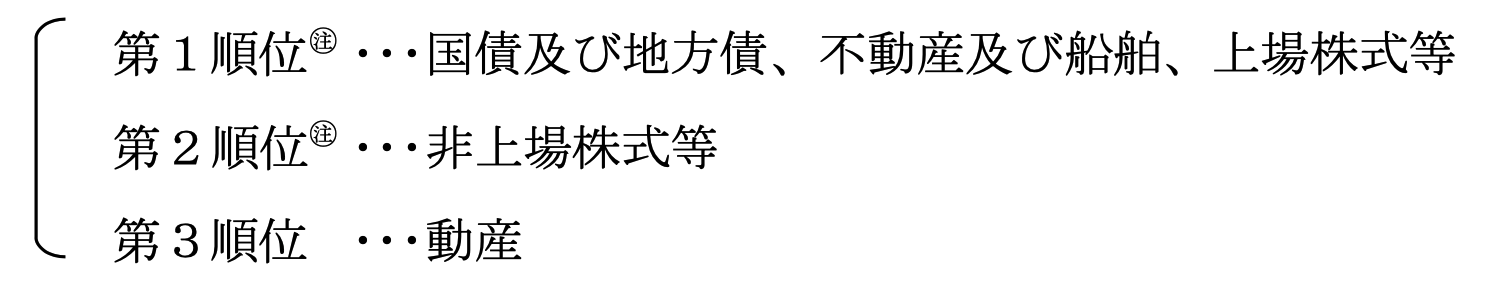 物納順位が第2順位であった社債及び株式等の有価証券のうち、金融商品取引所に上場されているもの等が第1順位になり、物納の範囲も拡大され、物納できなかった 有価証券でも金融商品取引所に上場されているもの等は第1順位で物納できるよう になりました。