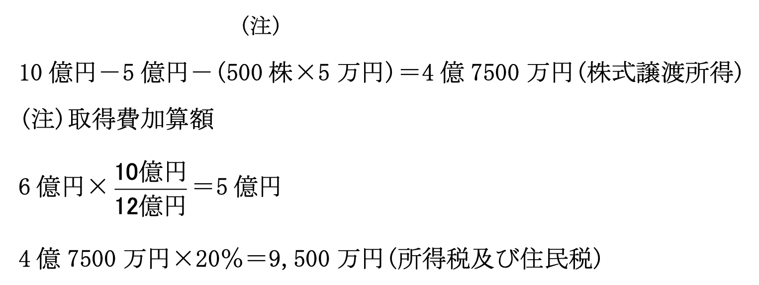 (2 万円-500 円)×50,000 株=9 億 7500 万円(みなし配当所得)