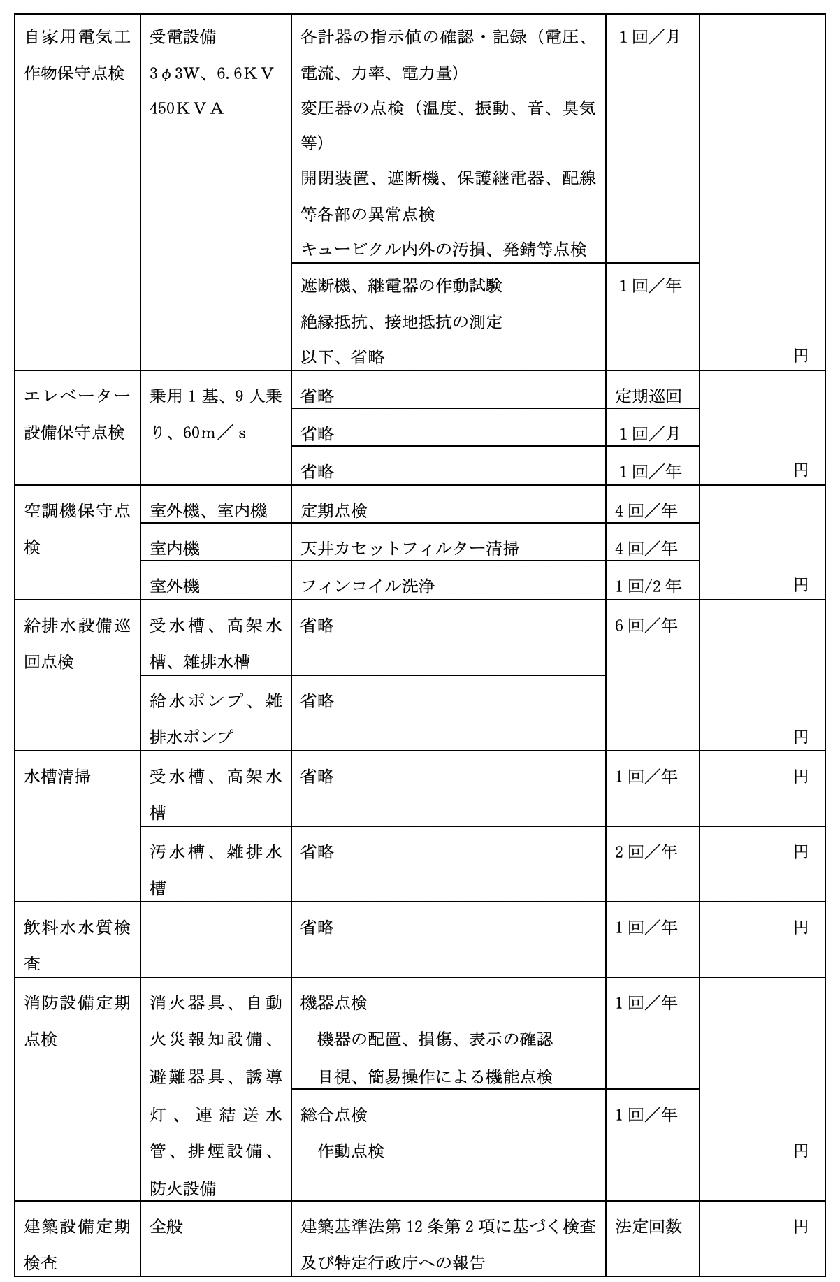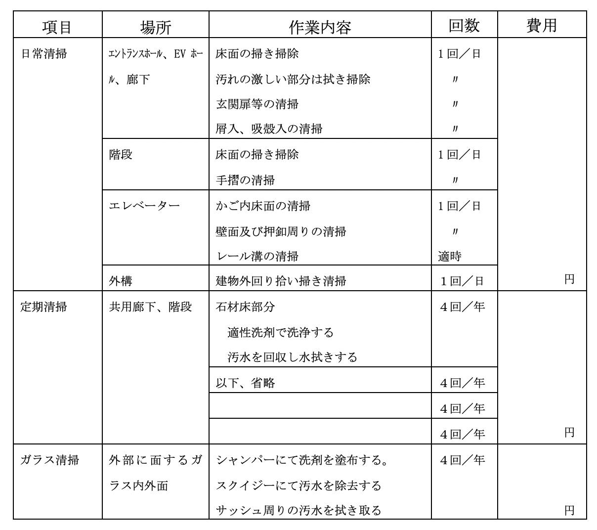 管理代行業務は次のとおりとします。見積参加会社がこれと異なる内容を希望する場合は、明記させます。