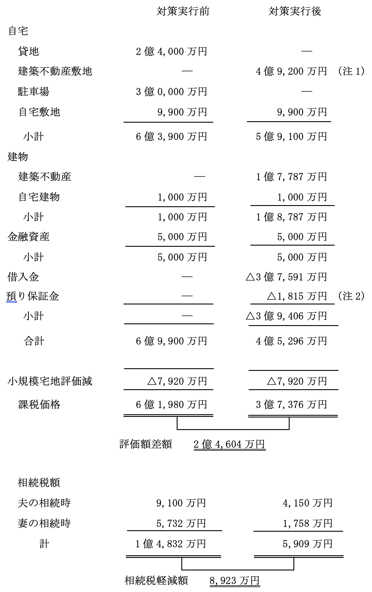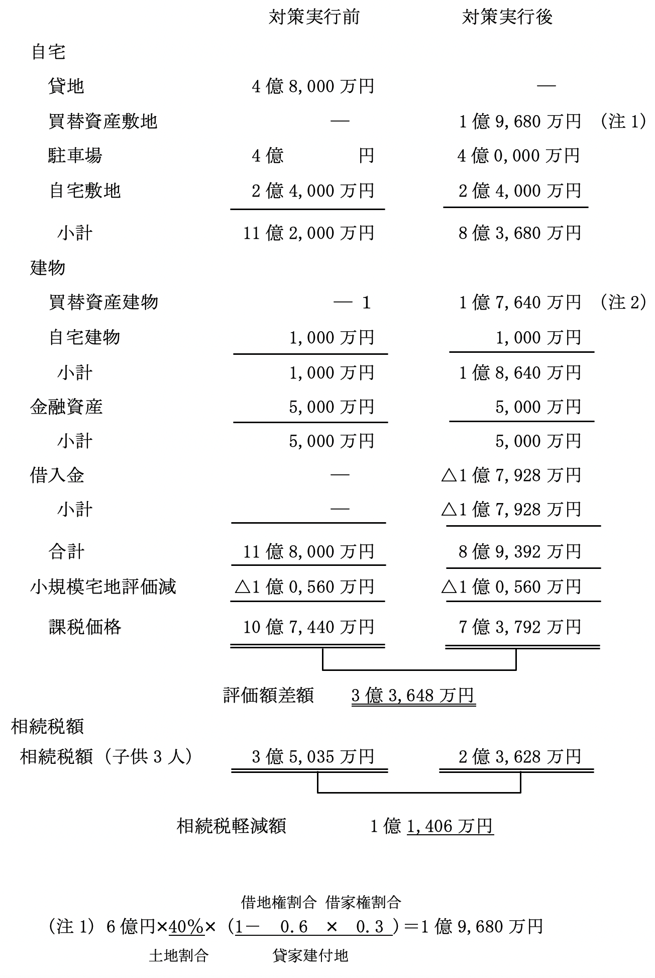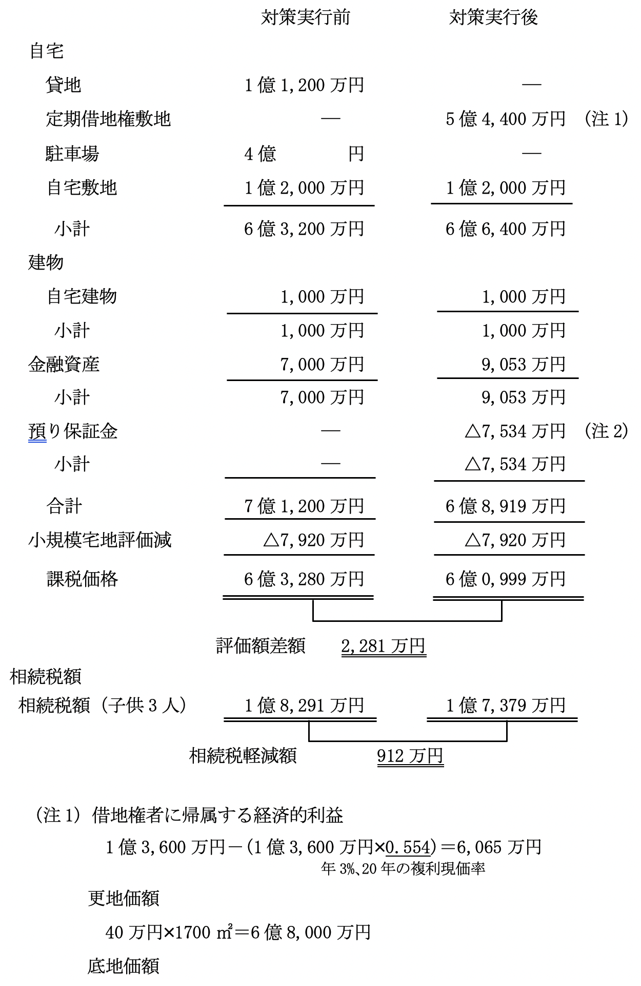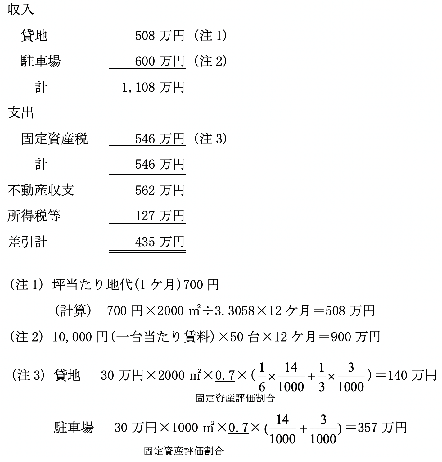 貸地700㎡、駐車場1000㎡、自宅400㎡、土地の時価は自宅は路線価で更地価額㎡当り30万円、その他は路線価で更地価額㎡当り