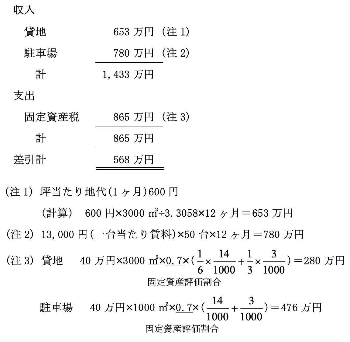 貸地2000㎡、駐車場1000㎡、自宅330㎡、土地の時価はすべて