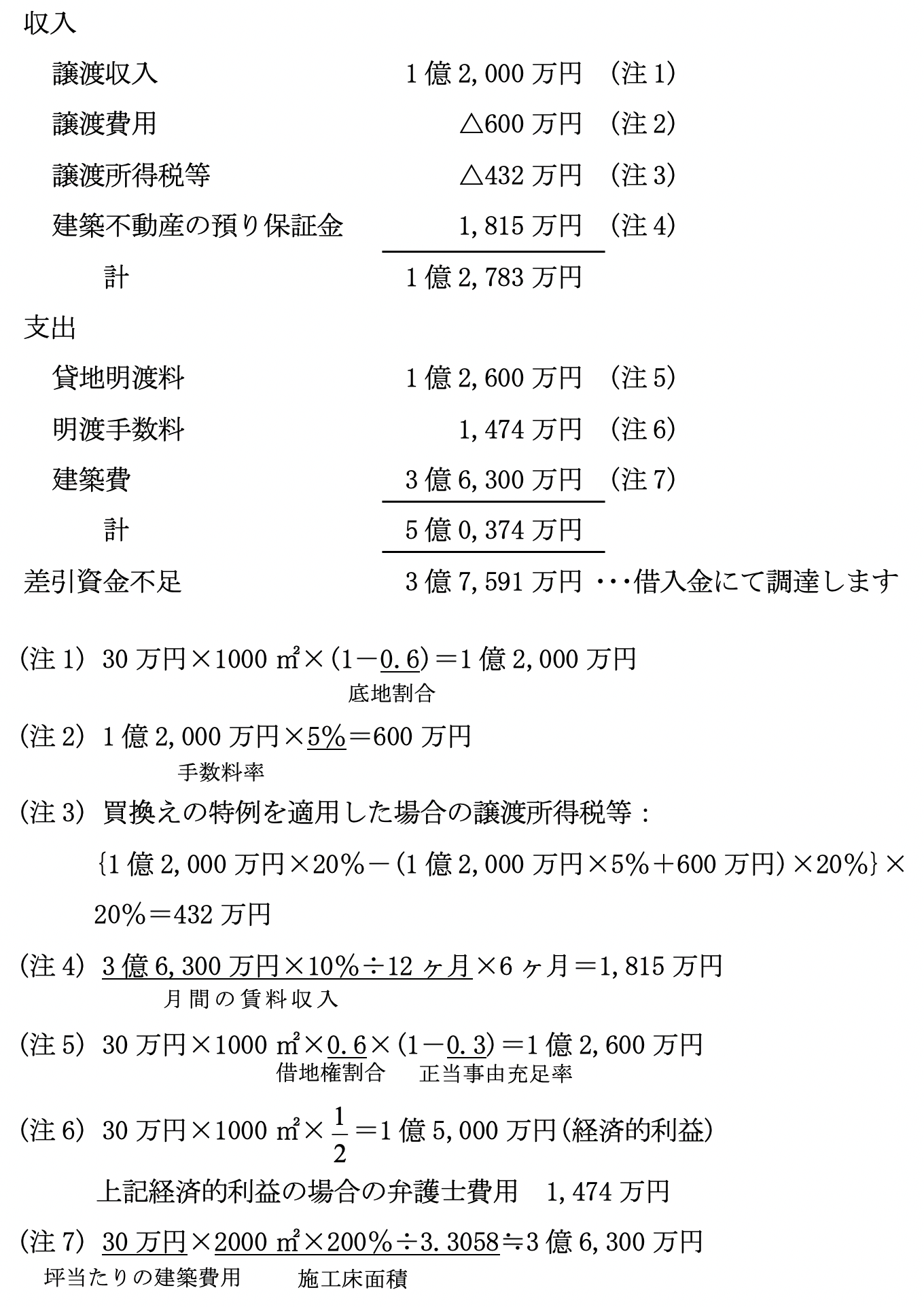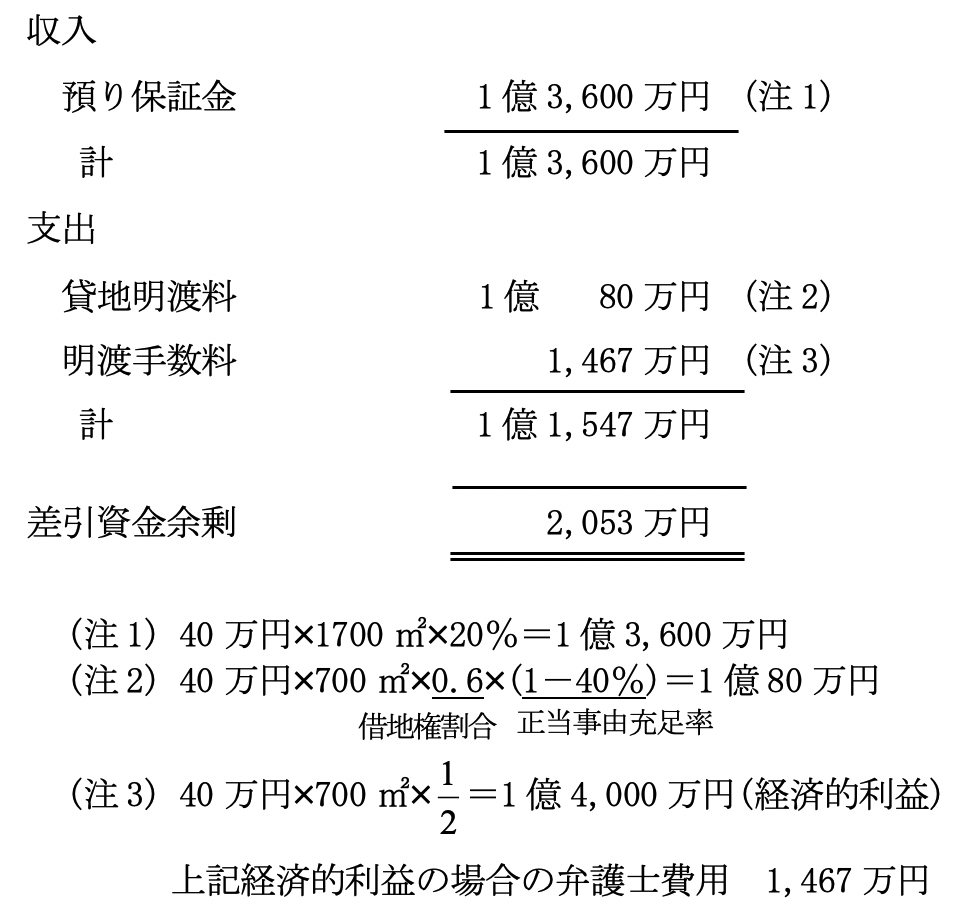 明渡し面積 1000㎡、売却面積 1000㎡とします。