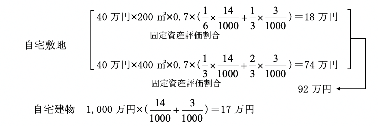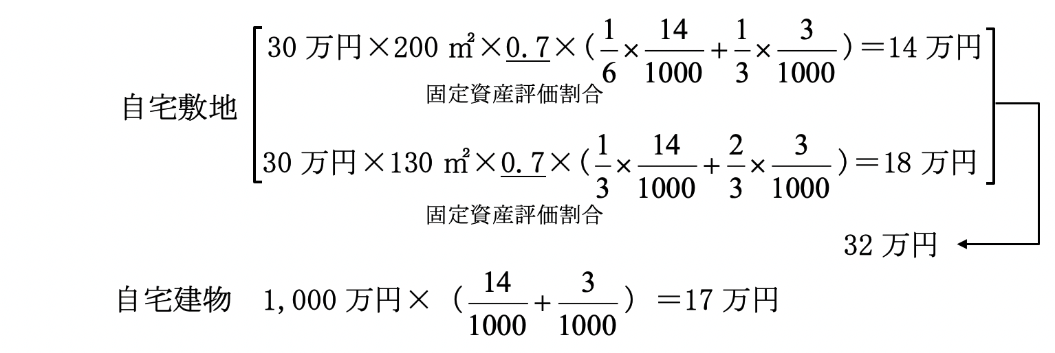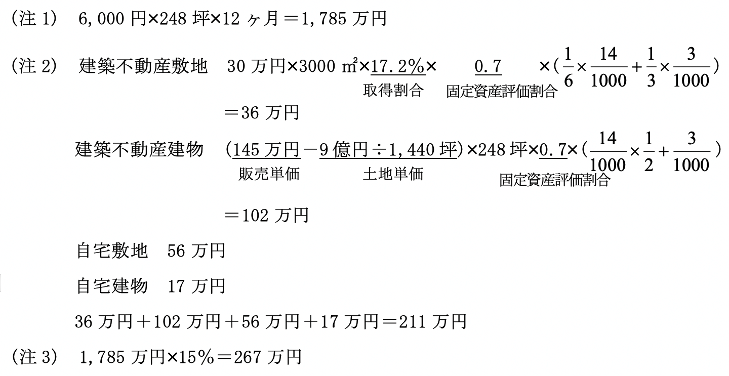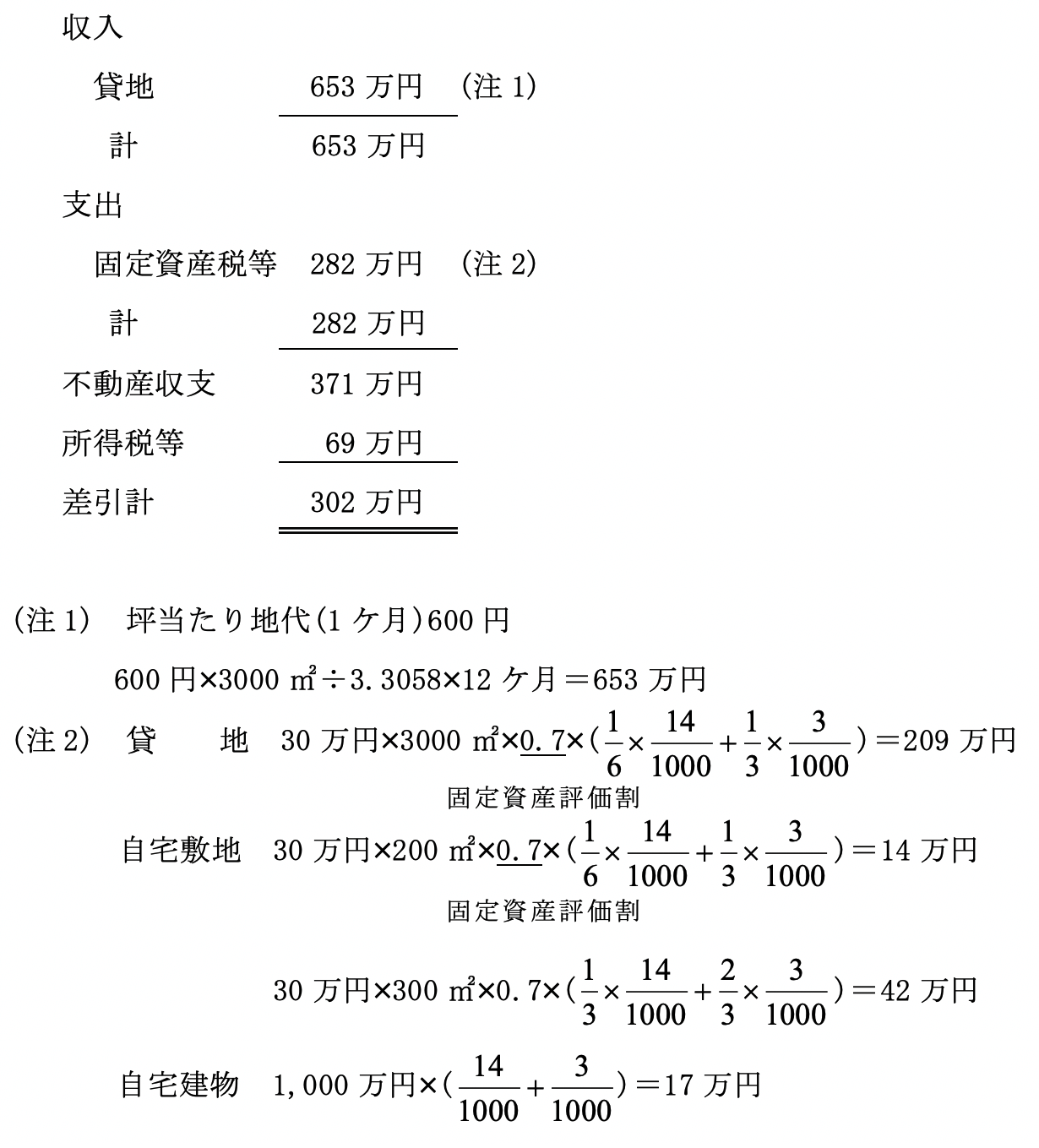 貸地2000㎡、駐車場1000㎡、自宅330㎡、土地の時価はすべて