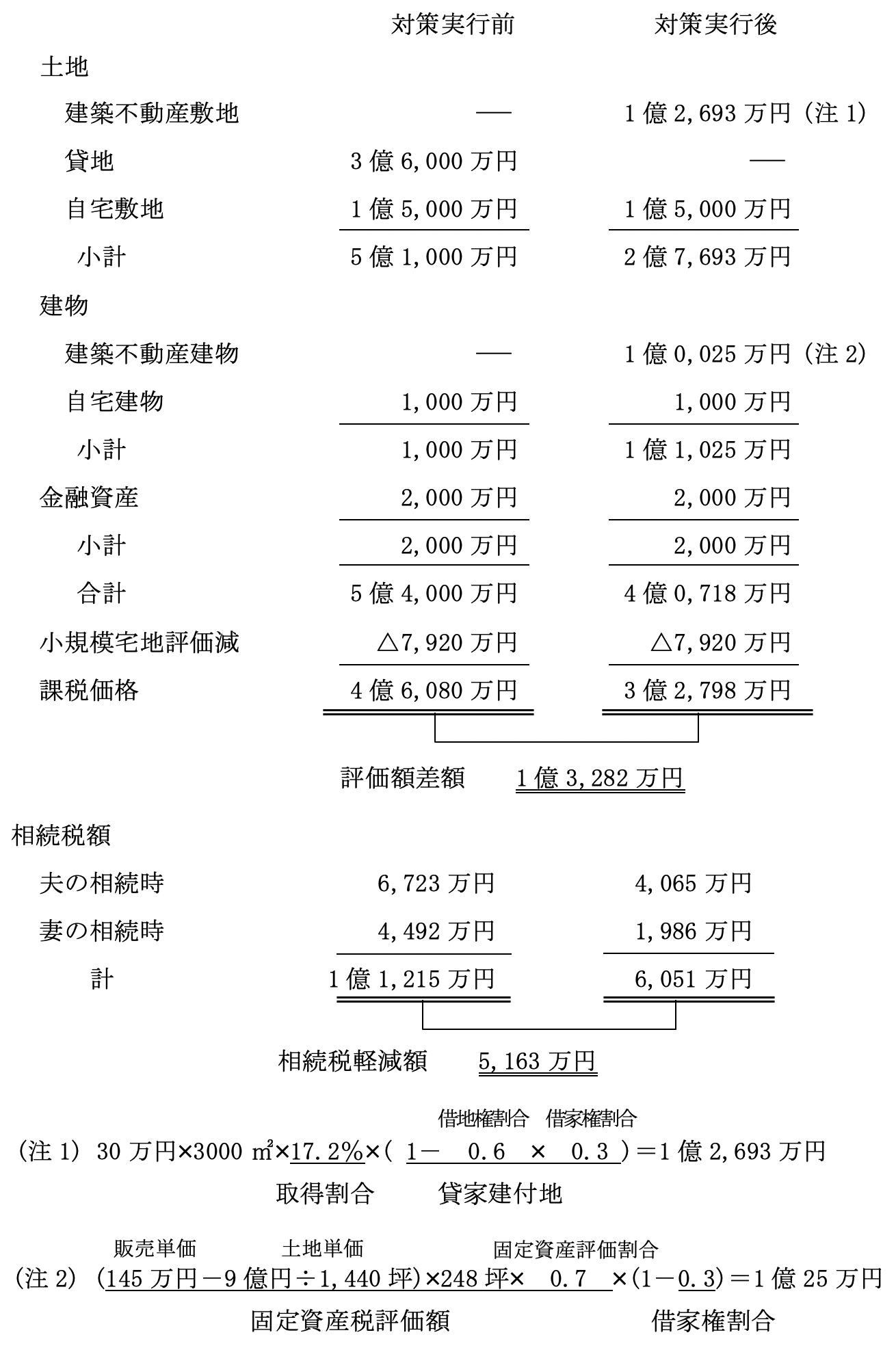貸地について借地人とともに等価交換事業により建築を行うことにより、相続税を軽減するとともに収益性を向上します。