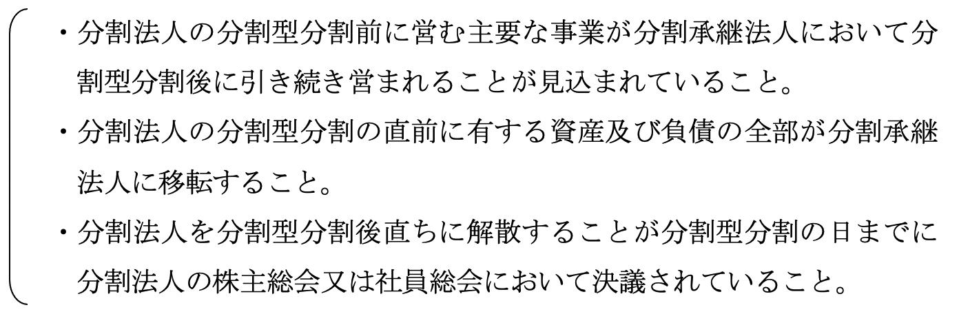 分割事業が分割後に分割承継法人において引き続き営まれることが見込まれていること。